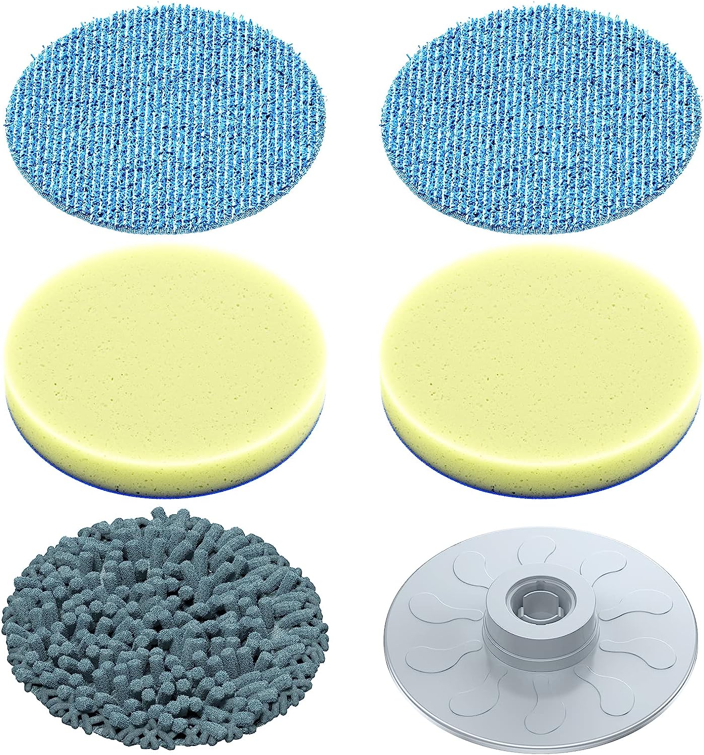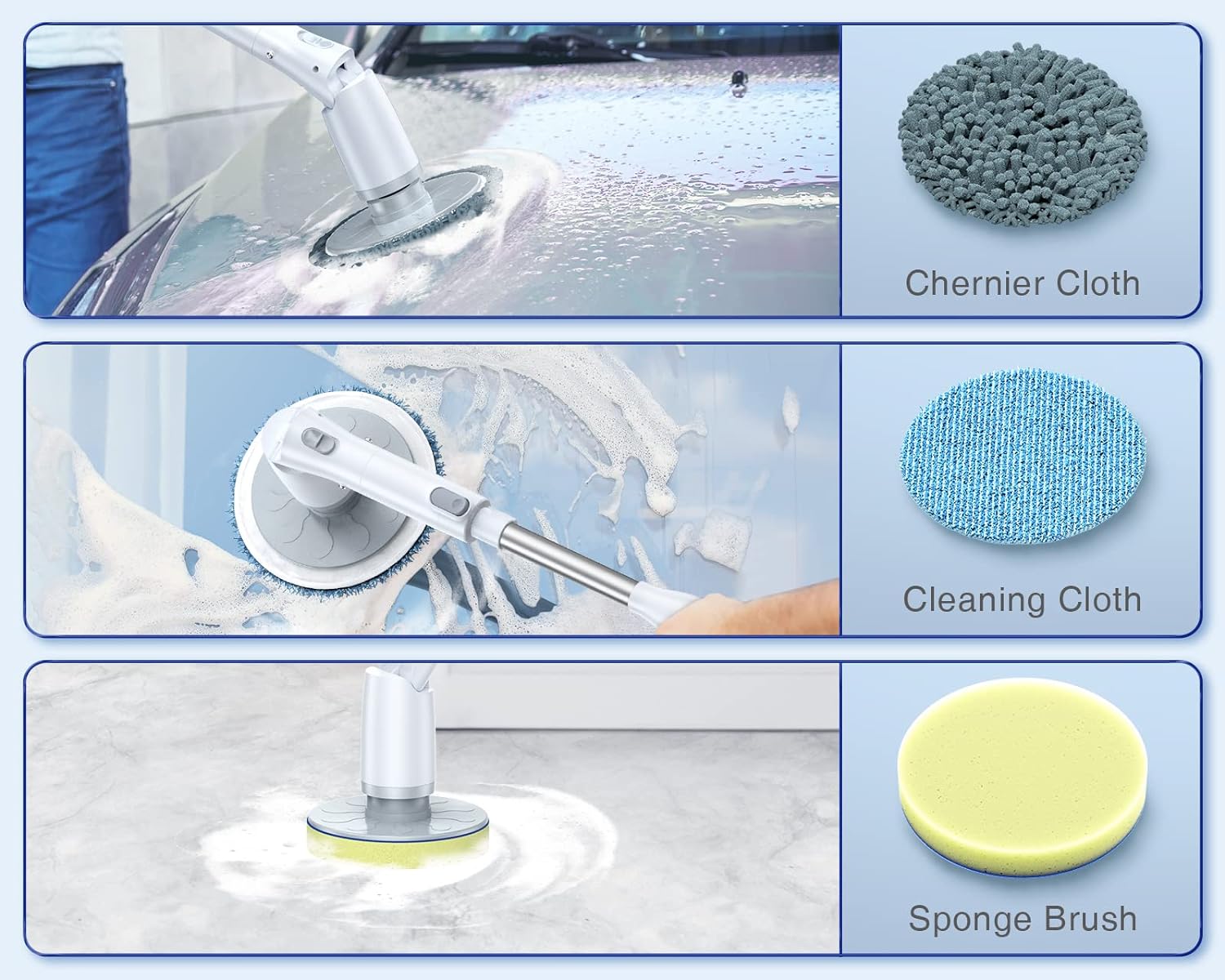4.[5 Brush Head] 5 replaceable cleaning brush heads cover all your needs;1️⃣Dome brush, for cleaning concave areas like bathtubs and sinks; 2️⃣Corner brush, suitable for cleaning narrow and hard-to-reach areas like corners and gaps; 3️⃣Flat brush for effortlessly cleaning grounds, glass, doors, and walls; 4️⃣Blue cleaning cloth for window or plane cleaning;5️⃣Chernier cloth for cars and Windows, etc, to protect the surface from wear, perfect removal of soap residue and water stains.
