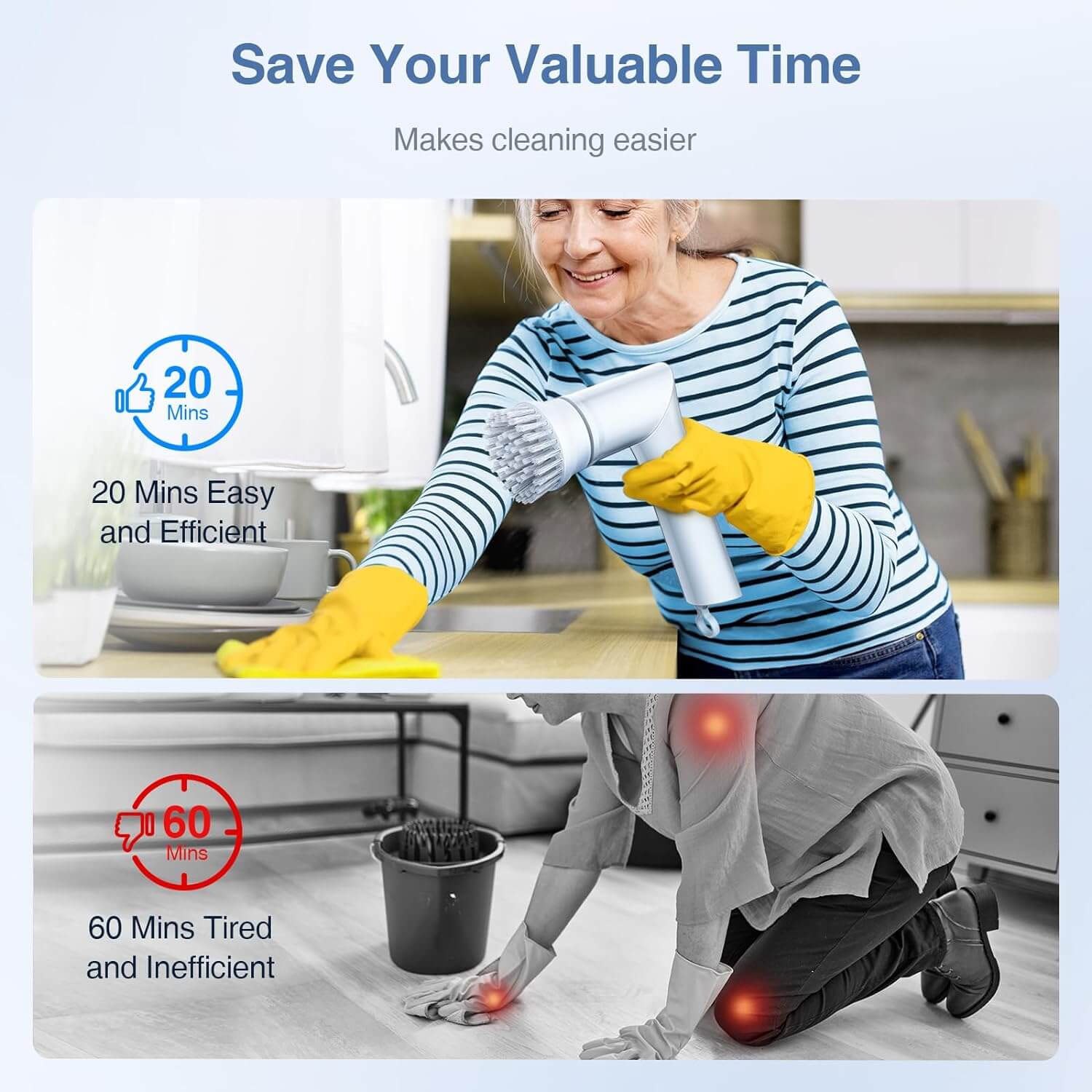 4.【Save Your Valuable Time】Make cleaning easier and more comfortable with LABIGO spin scrubber. No more bending or kneeling, relax your knees and back. Save your time and physical strength, allowing you to easily and effectively clean stubborn stains and dirty spots, both the elderly, children can use, it is your unique cleaning helper. The electric scrub brush is also a great gift for parents and friends.