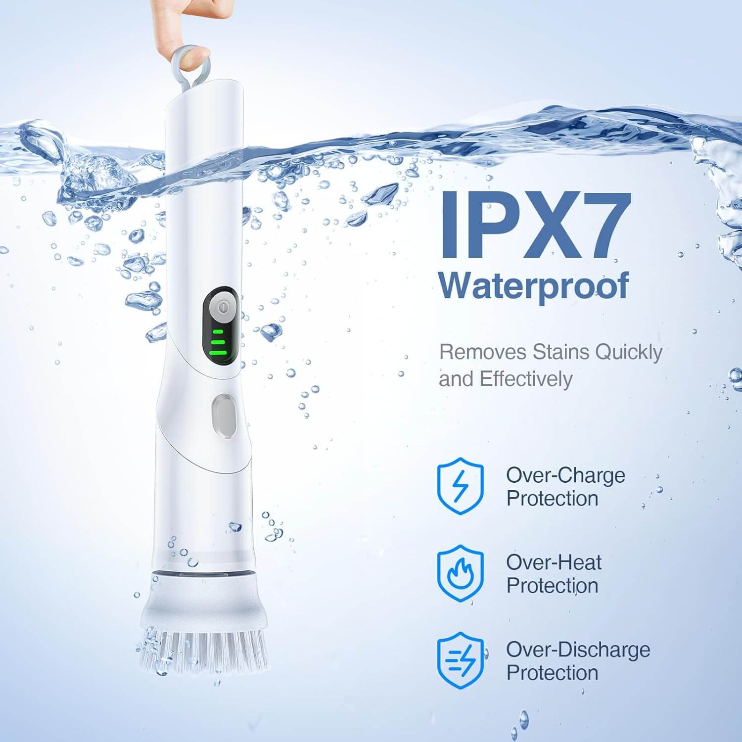 5.【Waterproof & Cordless】The electric scrubber is IPX7 waterproof, allowing you to use it in wet environments such as the bathroom or kitchen. [NOTE: Do not immerse the bottom charging port location in water.] Getting rid of the long cord, you can easily use this spin brush for cleaning bathroom for cleaning any corner of the house, there will be no more plug and cable trouble.