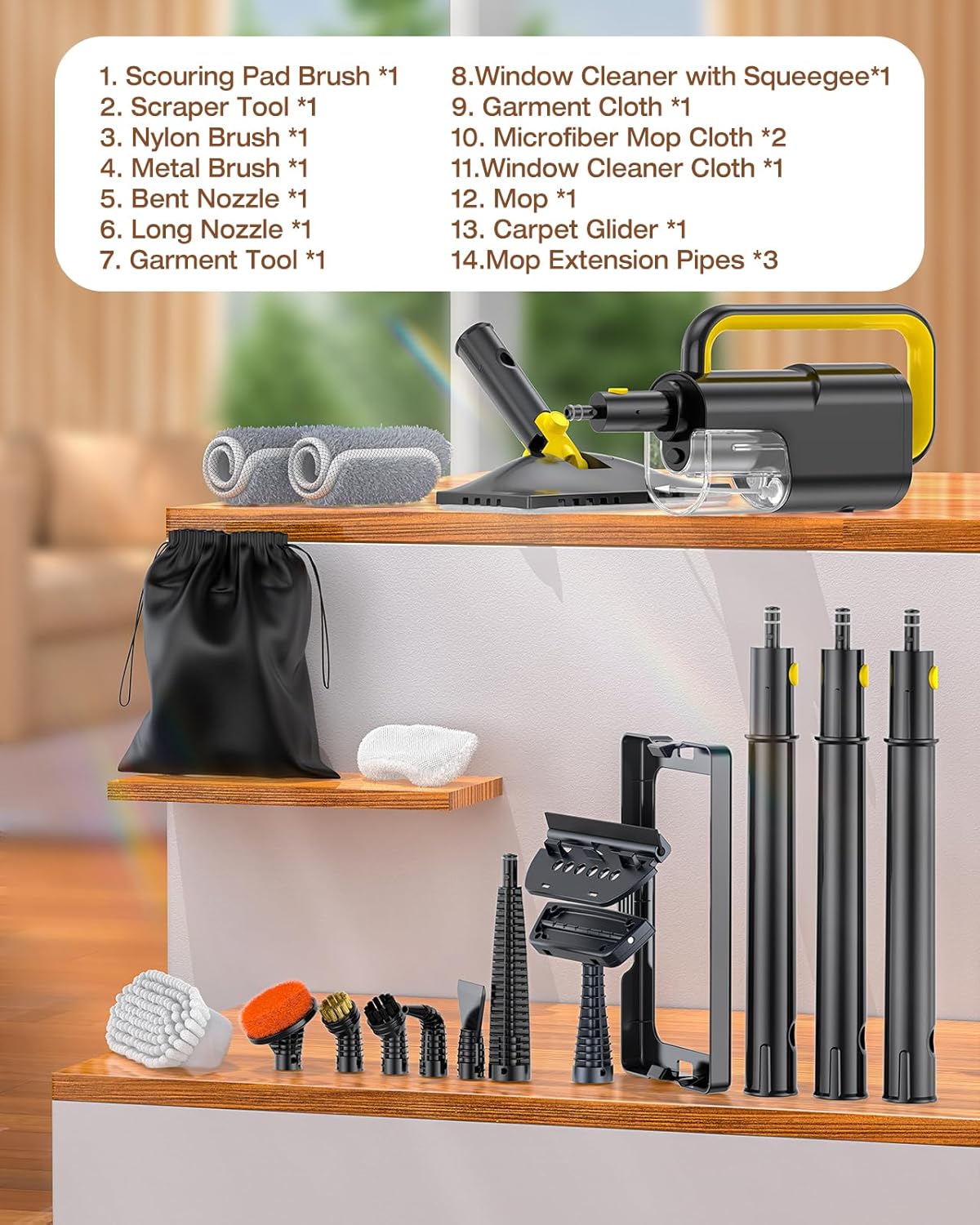 One Tool for Every Surface: LABIGO 10-in-1 floor Steamer is more than just a floor cleaner—it’s your ultimate cleaning companion for carpets, tiles, windows, sofas, clothes,and more! With its carpet glider attachment, the steam cleaner glides smoothly over carpets, delivering deep cleaning. The easy-to-remove mop head allows you to detach and clean it effortlessly by simply stepping on the raised tab. From kitchen grease to bathroom grime, this steam mop does it all!