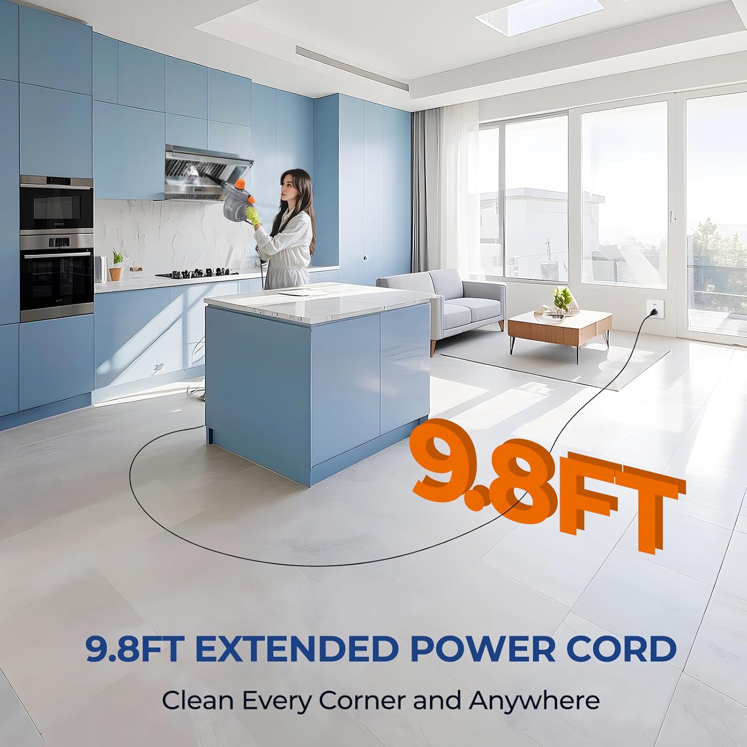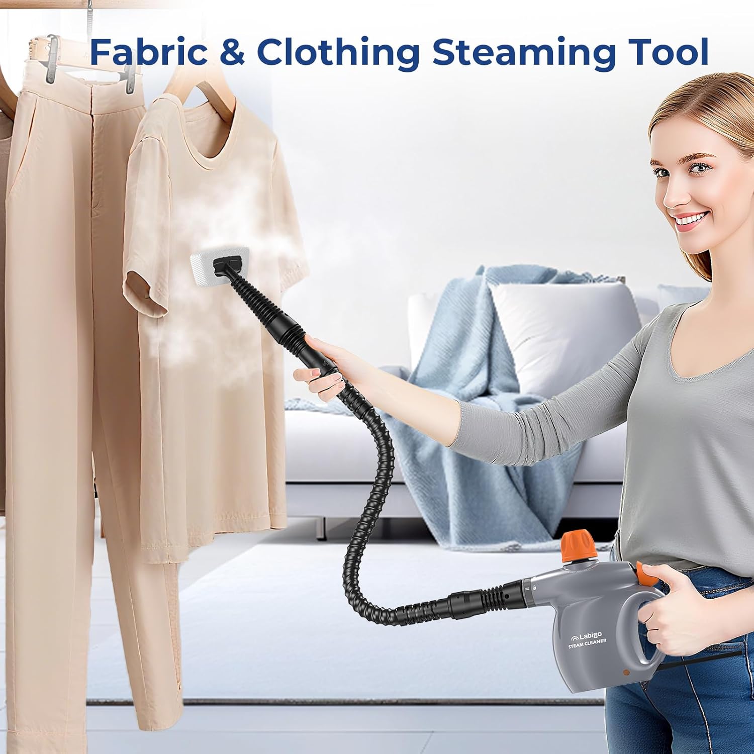 LIGHTWEIGHT AND PORTABLE: LABIGO steam cleaner features a handheld design and a 9.8 ft power cord, making it easy to carry, store, and access hard-to-reach areas