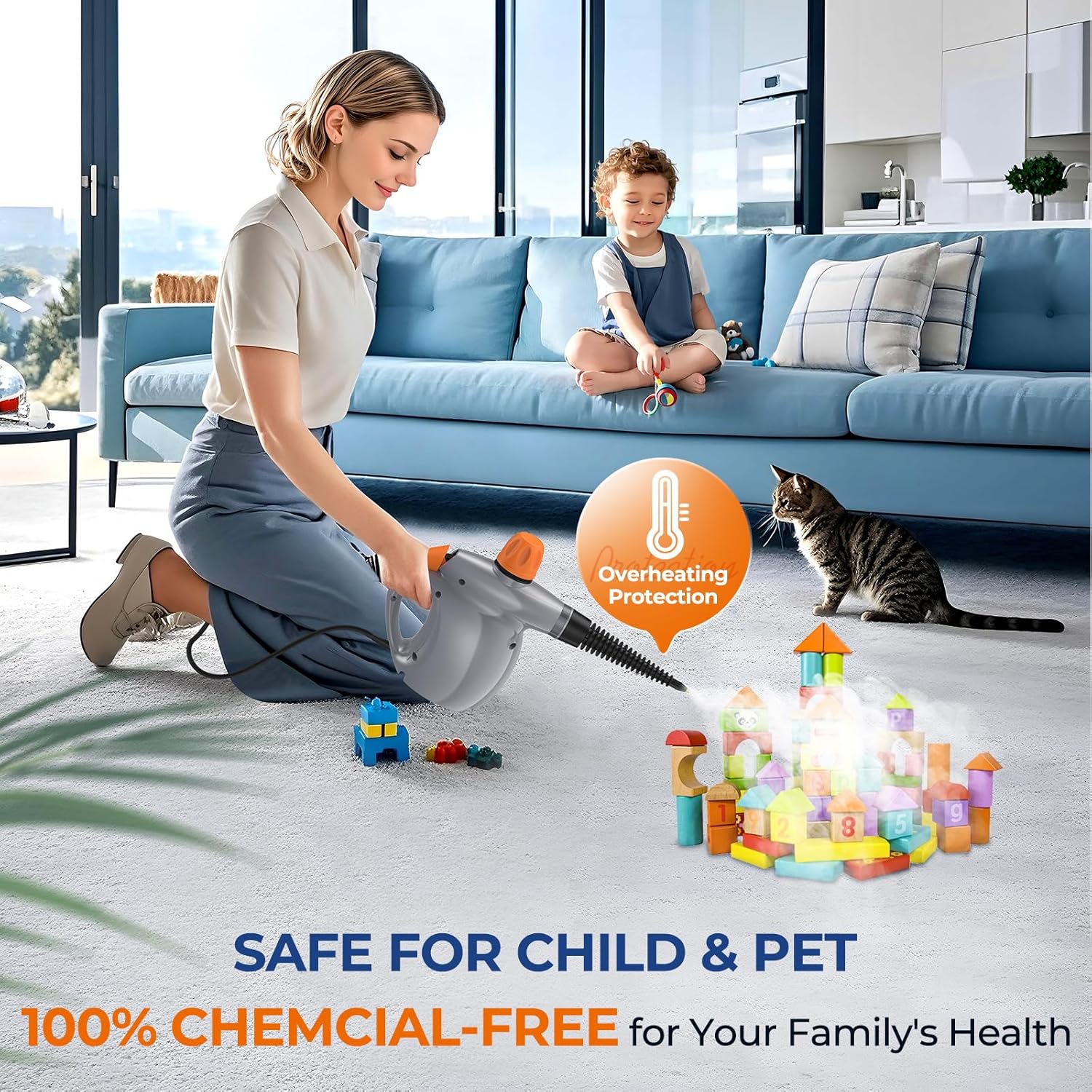 CHEMICAL-FREE & CHILD/PET SAFE: Add water to harness steam for sanitizing surfaces without harsh chemicals; Worry-free cleaning around kids, pets, and on delicate fabrics, giving you extra peace of mind while cleaning