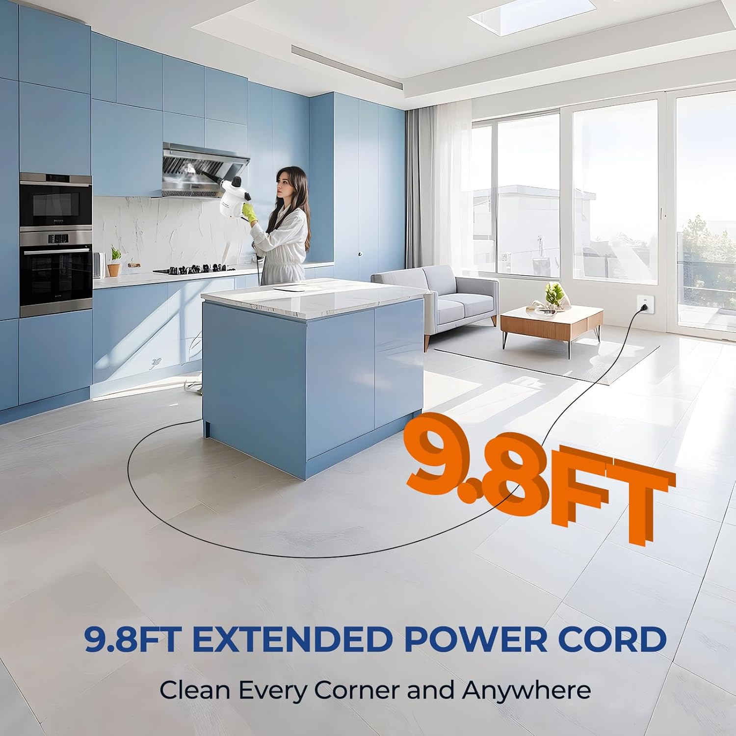 LIGHTWEIGHT AND PORTABLE: LABIGO steam cleaner features a handheld design and a 9.8 ft power cord, making it easy to carry, store, and access hard-to-reach areas