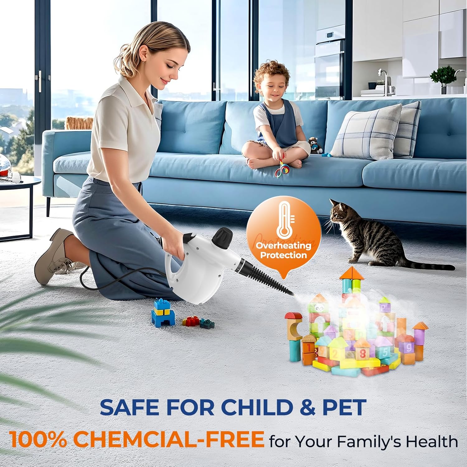 CHEMICAL-FREE & CHILD/PET SAFE: Add water to harness steam for sanitizing surfaces without harsh chemicals; Worry-free cleaning around kids, pets, and on delicate fabrics, giving you extra peace of mind while cleaning